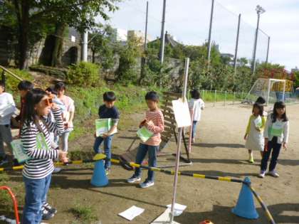 太陽は,どのように動くのかについてかげの動き方と一緒に時間を決めて観察しました。
