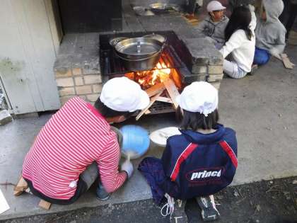 みんなで協力して,かまどを準備したり,具材を切ったりして準備をしました。