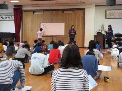 デイサービスセンターより,ケアマネージャーの方に来ていただき,利用者さんの人数や普段の仕事内容,その中で大事にされていることなどをお話してくださいました。子どもたちは,うなずいたり,メモを取ったりしながら,熱心にお話を聞いていました。