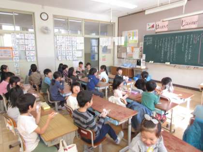 2年生から,育てたお米で作ったおにぎりが届きました。すてきなプレゼントに,子どもたちは大喜び。一口一口,おいしくいただきました。ありがとうございました。