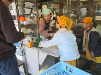 3年2組では,北野商店街で販売体験をさせていただきました。とようけ屋山本さんでは,お客様への対応や,袋詰めの仕方などを教えていただきました。とようけ屋山本様,ありがとうございました。