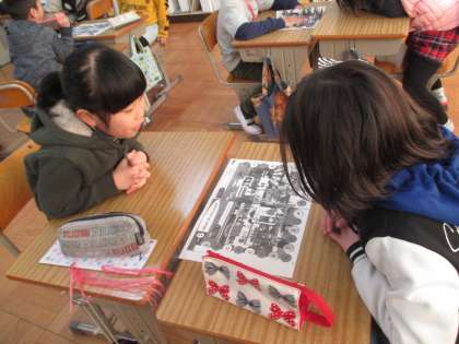 今年度から,3年生でも外国語活動を行っています。今回のめあては「What do you want?」。「何がしたいのか,何がほしいのか答えよう」です。本時間は,「地図から相手が見つけたいものを指でさすポインティングゲーム」を中心に学習しました。地図の中に隠れているアルファベットや,食べ物などを探し,外国語に親しむことができました。