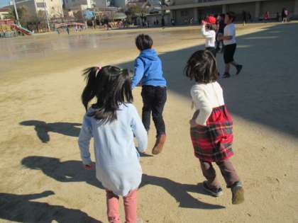 中間休みに,クラスみんなでこおりおにをしました。運動場には水たまりやぬかるみもたくさんありましたが,子どもたちは元気に走り回っていました。またみんなで遊ぼうね!