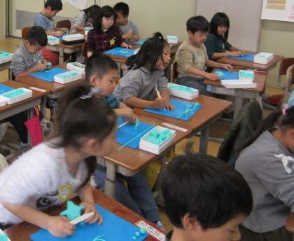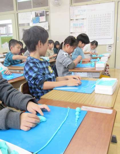 今年度最後の,ねんどを使っての学習です。ねんどをまるめたり,ひねったりしながら,自分の作品を作りました。久しぶりのねんどに子どもたちは大喜びでした。
