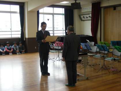 今年度,京都市教育員会から毎日児童の登下校の見守りをしていただいている地域の皆様,PTAの皆様に感謝状をいただきました。そこで3月7日に代表の方にお越しいただき感謝状の贈呈式を行いました。贈呈させていただいた後,全校児童の代表として卒業を控えた児童会の6年生がお礼の言葉を述べました。これまで見守っていただいた方々への感謝の気持ちを素直にお伝えさせていただいたと思います。そのあとご参加いただいた方から児童に励ましのお言葉をいただきました。ありがとうございました。平成29年度も終わりに近づいてきました。本当に暑い日も寒い日も変わらず見守っていただきありがとうございました。改めて感謝申し上げます。