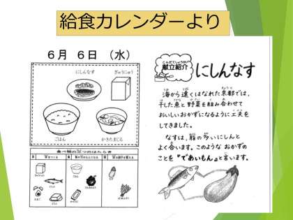 「にしん」「なす」どちらも苦手な児童もいますが,京都の都に昔から伝わる献立を大事に味わっていたようです。
