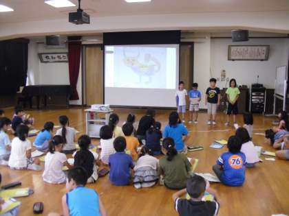 友だちの発表を「お〜!」や「こわい!」と言いながら真剣に聞く子どもたちの様子が見られました。