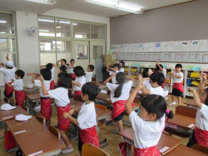 お家の人に作ってもらった,衣装をつけておどってみました。