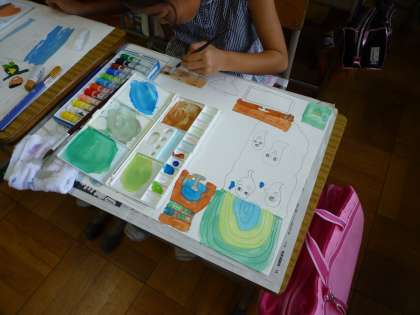 お話を聞いて,想像したことを絵で表現しました。