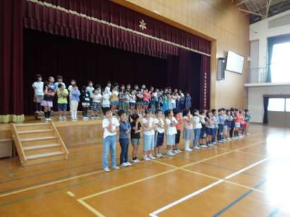 立ち位置や移動の仕方をしっかり覚え,体育館で通し練習を行いました。発表全体の流れには随分慣れてきています。次の目標は,一人一人がセリフを大切にし,言い方や動きを考えることです。見てくださる方に思いが届くような発表をしたいですね。