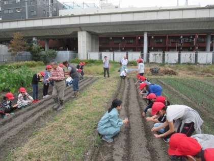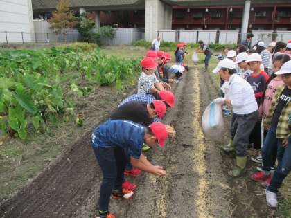 そこで,今回は春菊の種をまきました。各自農家の方からいただいた種をまき,籾をかぶせました。子どもたちは農家の人たちの苦労を学び,新たな野菜の成長を楽しみにしている様子でした。