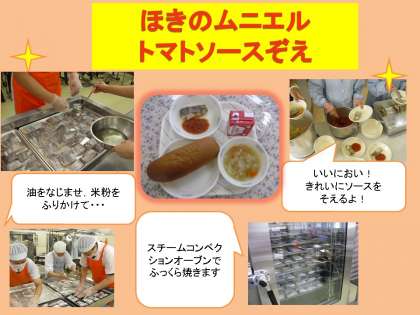 食べる前から,「ほき?」「ムニエル?」「トマトソースをそえる?」と,子どもたちは,献立にわくわくしていたようです。