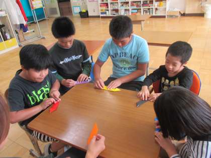友だち同士で教え合いながら,2個の手裏剣を作ることができました。