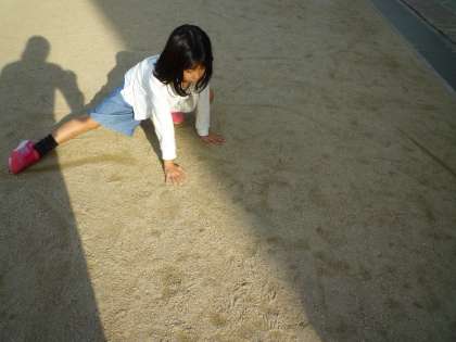 実験では,日なたと日かげの間にしゃがみ,両手で比べる子がいたり,日なたと日かげを比べるために,「忘れないうちに・・・」と急いで動く子いたりなどそれぞれの方法で比べていました。