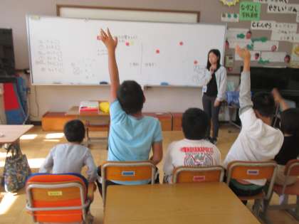 三角形や四角形,次はどんな形が出てくるかな?と期待しながら何度も何度も手を挙げて発表しています。