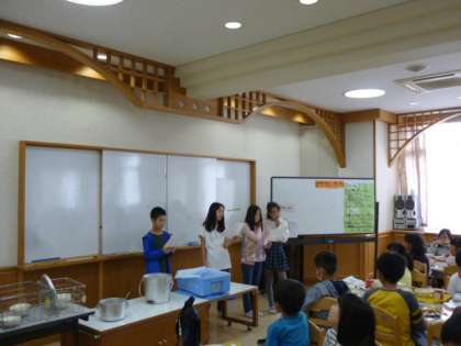 10月17日(水)は,ランチルームで学年合同で給食をいただきました。