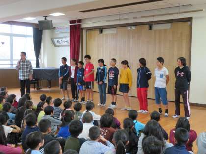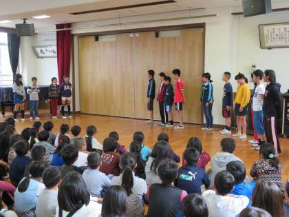 それに向けて,仁和小学校で全校児童による壮行会を開いてもらいました。