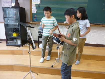 打楽器のリズムに気をつけました。グループごとに組み合わせの打楽器が違っていて工夫しています。