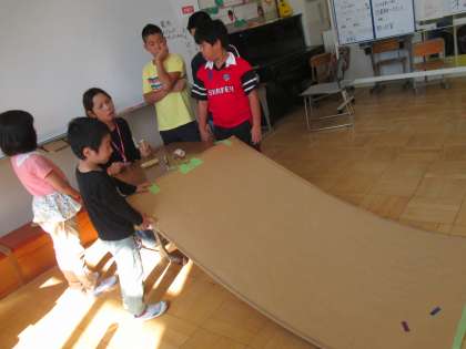 電池の大きさや重さを替えながら,距離をのばすためにはどうすれば良いかを考えながら