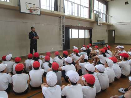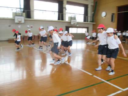 11月8日(金)に北野中学校の保健体育科の先生に来ていただき,体育の授業をしていただきました。授業の中で,「集団の一員としての自覚を持つ」「からだをしっかり鍛えよう」「差があることを理解しよう」「温かい心を大切にしよう」「学び合える集団になろう」という大切なことを教えていただきました。