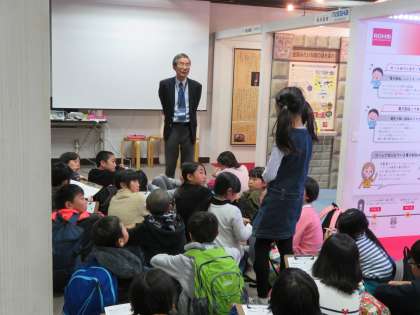 モノづくりの殿堂学習では,京都発祥の会社が出すブースを見て,京都のモノづくりについて学習しました。また,ブースを構える会社で働いていた「モノレンジャー」の方々に進んで質問をするなど,興味をもって学習に取り組む姿も見られました。