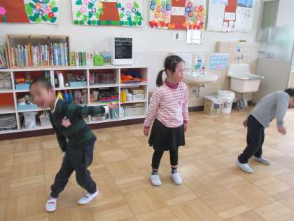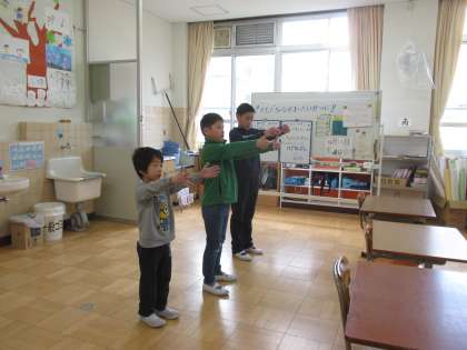 毎日のスタートは,体幹を整える体操から。じっくり ゆっくり たのしく取り組んでいます。