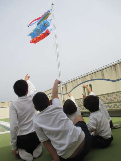 風も吹いて こいのぼりは悠々と空を泳いでいました。