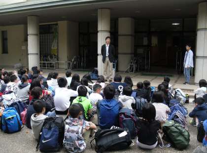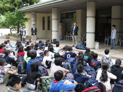 6年生は,今日から一泊二日の修学旅行で広島方面へ行きます。60人全員が揃い,元気に出発しました。