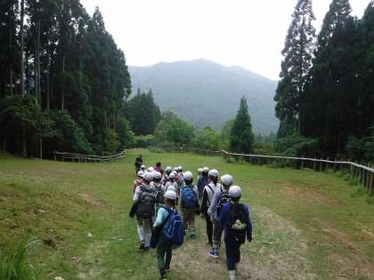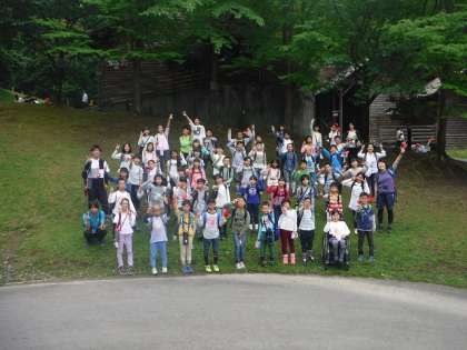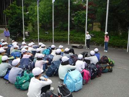 無事に山の家に着きました。車に酔う子もなく,元気に入所式に臨みました。