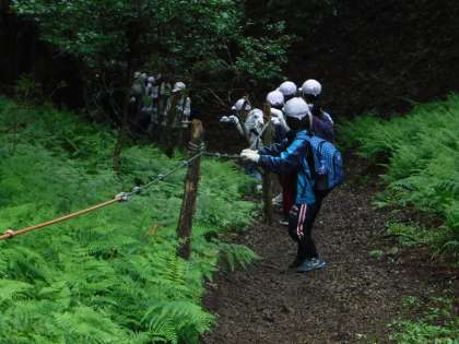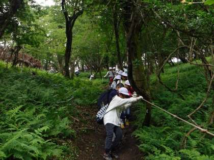 いよいよ下山です。子どもたちは急斜面を降りていきます。ロープを持ちながらゆっくりゆっくり降りていきました。