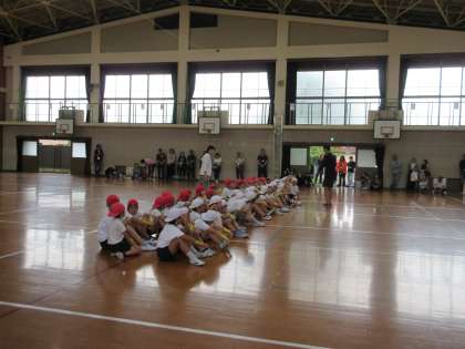 組ごとに踊って,互いのいいところやアドバイスを伝え合い,運動会へのパワーを充電しています。