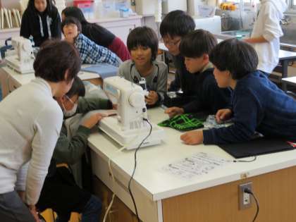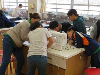 家庭科の学習で,民生委員さんに来ていただき,ミシンの使い方を教えていただきました。子どもたちは,初め,緊張して怖々と縫っていましたが,慣れてくるとリラックスしながらも慎重に縫い進めていました。「ミシンを使って何か他の物を作ってみたい!」「ミシンは便利で楽しい!」と感想を言っていました。