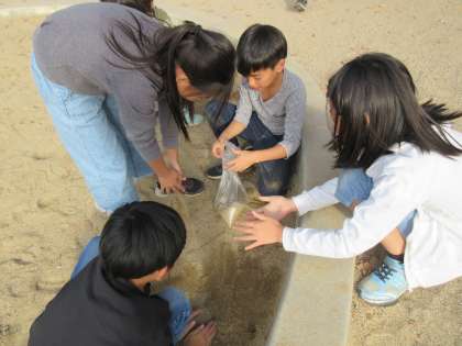 その後砂場に行き,1kgはどれくらいなのかを調べました。砂で1kgを作る時に,子どもたちは,「ランドセルよりは軽いし,これくらいかな?」と今までに量ったことがあるものと比べながら活動していました。