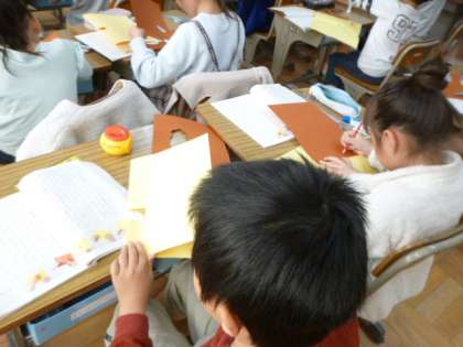 国語科「しかけカードのつくり方」の学習で,しかけカードを実際に作ってみました。