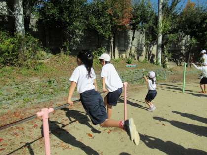 準備運動が終わると,体ならしに「つばめ」「つばめジャンプ」