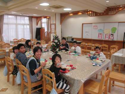 ランチルームでは,ツリーを真ん中に置いてパーティーのような雰囲気で