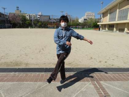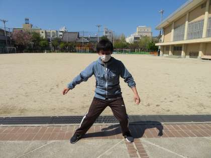 休校期間中にお家でできるストレッチを紹介します。去年の大文字駅伝のメンバーも走る前にこのストレッチをやっていました。背筋をしっかりと伸ばして,写真1と2を繰り返します。2の時は,しっかりと足を開いて腰を落としましょう。ぐらぐらせずにできるかな?