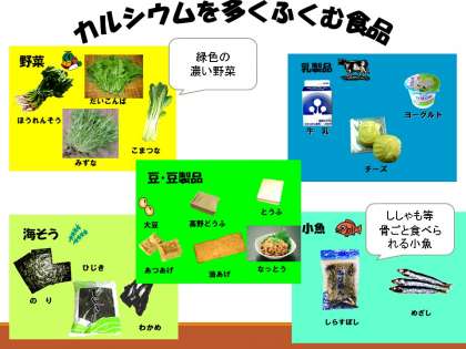この時期は,体作りの大事な時期であり,カルシウムは大人よりも多く必要とされています。この学童期にしっかりとカルシウムをとっておくと,大人になってからも丈夫な骨でいられるといわれています。効果的にとれるように,給食での牛乳の飲用が勧められています。