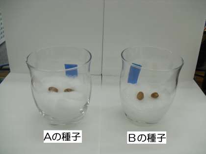 Aの種子とBの種子で条件を1つだけ変えて発芽の様子を観察してみます。