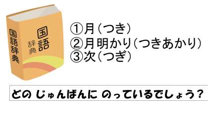 家に国語辞典がある人は,他にもいろいろ調べてみてください。