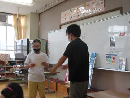 2か月間がんばってきた姿が分かる,写真いっぱいのカードを一人一人に手渡しました。