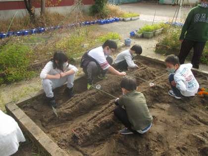 なかよしの畑でほうれん草と小松菜を新しく植えました。