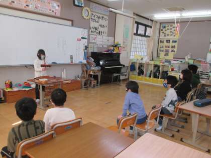 友達の鳴らす音がすてきで,真似する子,体も動かして表現する子,みんな得意気に発表していました。