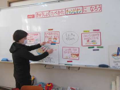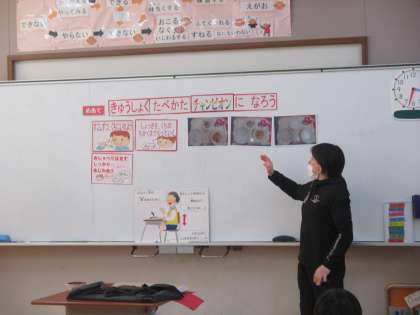 栄養教諭の早田先生に 給食・お弁当食べ方チャンピオンについて教えていただきました。