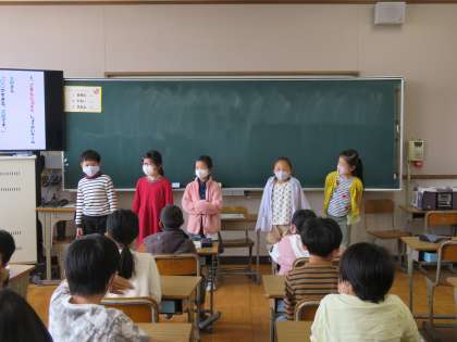 列ごとに2人分の紹介を終えると,見ているみんなからたくさん拍手が起こりました。