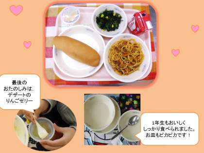 ほうれん草のソテーも彩りよく,野菜が苦手な児童も喜んで食べられたようです。
