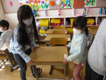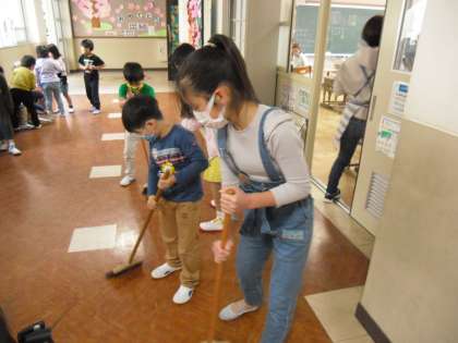 今日も,ほうきのはき方や机の運び方のコツなどを伝えながら,楽しそうに掃除をしていました。