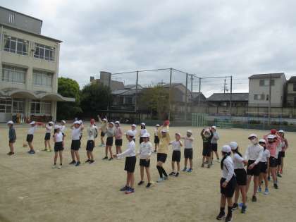 1組もボールを使った体ほぐし運動をしたり,鬼ごっこをしたりしました!