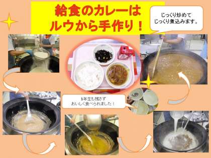 ルウを炒める香ばしい香り,カレー粉を炒る良い香りが学校中に漂い,