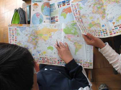 日本と同じ緯度や経度の国々を調べたり,国の国旗からどこの場所かを調べました。